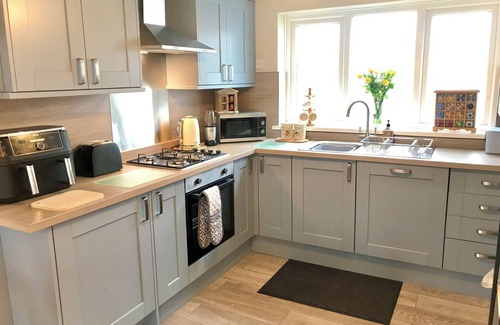 Fully Equipped Kitchen: Prepare delicious meals with our gas hob, electric fan oven, microwave, Ninja Air Fryer, and more. We also provide coffee, tea, and basic condiments.