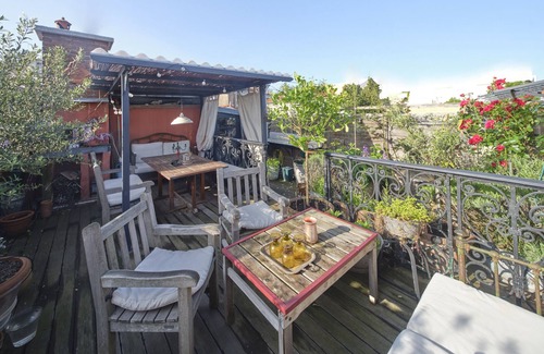 This bright and cozy 2-bedroom duplex, wooden floored apartment is perfect for up to 6 guests. It offers vegetalised terrace perfect for a drink or diner in summertime