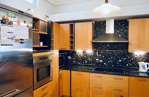 Incredibly spacious flat 120sq meters with a fancy also spacious kitchen for kitchen lovers. Combining mountain & sea while is 10 minutes away by car from the beautiful mountain of Pelion & 5 minutes walk from the port of Volos where you can catch boats that depart to all the islands around : Sporades complex Skiathos, Skopelos, Alonisos & Skiros. There are also boat trips around pagasitikos gulf to trikeri peninsula every day! Enjoy the trip & the views… Also next to trendy ouzo tapas places which Volos city is quite popular for many years of fisherman tradition