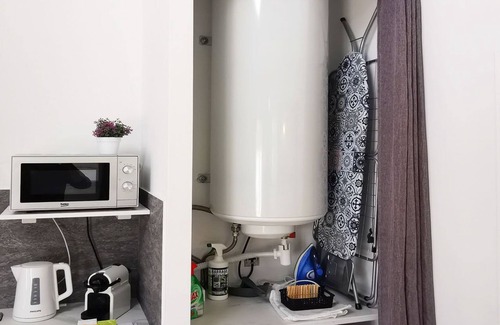 The kitchen is equipped with a stovetop, a refrigerator, and a dishwasher, as well as a coffee maker, an electric kettle, and a microwave. Connect to the free WiFi, or get cozy in front of the Smart TV. Bathroom amenities include a hair dryer, towels, and toilet paper. And there's access to laundry facilities, so you can even pack a bit lighter. Other amenities at this 2-bedroom, 1.5-bathroom rental include bed sheets, an ironing board, heating, and limited housekeeping.