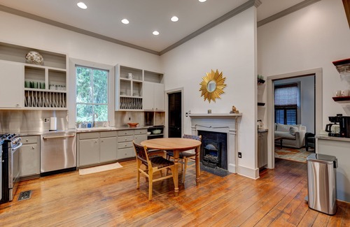 This recently renovated 2 bedrooms (Primary: King Bed / Secondary: 2 twins / Additional sleeping space: Queen Sleeper Sofa), 2 bathroom home is located in a quiet residential neighborhood just a few blocks away from the best shopping & dining in downtown Thomasville. The home has a beautiful kitchen featuring stainless steel appliances. This historical home features multiple working gas fireplaces and flexible living spaces to make your own. Features a large backyard with beautiful Georgia deck with plenty of outdoor dining and fireside relaxation space. There is ample parking and all of the amenities that make this the perfect "home away from home". The living room has ample seating with two large sofas and a flat screen smart tv and WiFi included.