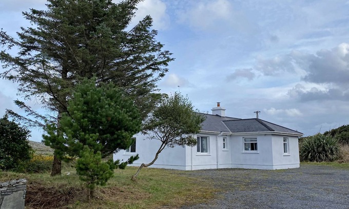 3 Bedrooms - Sleeps 6. This holiday cottage is located on an elevated and private site close to Dogs Bay, Roundstone. It offers views of Errisbeg Hill and the Dogs Bay area. An ideal location for families, couples and friends who are looking for a quiet getaway in a beautiful location, with beaches within a short stroll. Short breaks are available all year round. The cottage boasts a thoroughly relaxing and quiet seaside location, while still being just a five-minute drive into the picturesque village of Roundstone. This is a very popular holiday destination and the beaches at Dogs Bay and Gurteen Strand are known worldwide. The cottage is an ideal location for exploring all that the Connemara region has to offer. Dogs Bay beach is a two-minute drive, or a ten-minute walk. Sea angling and boat tours are available from the harbour in Roundstone village. Kayaking and paddleboarding are alao available locally at Gurteen beach. Other activities available in the area include, lake and river fishing, walking trails, hill walking, pony trekking, golf and much more. Roundstone village provides lots of places to eat and drink and its shops will supply you with everything you need for your self-catering stay. Ballyconneely is 10 minutes by car, and Clifden town is 20 minutes by car.