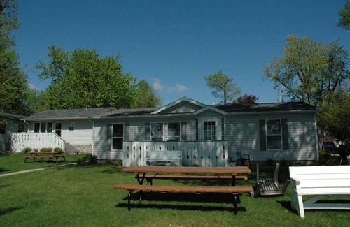 This cottage has three bedrooms - one full bed, two twin beds, one queen size bed; two full bathrooms with showers (towels included); kitchen that includes a microwave, stove, oven, fridge, pots, pans, dishes, and a coffee maker; and living room. Utility room with washer and dryer. This cottage sleeps six people. Parking is included. Enjoy the deck, grilling outside or one of our communal fire pits. Our property also has a private boat launch and piers for our guests to access. WIFI also available! Restaurant on premise - visit The Shores of Fox Lake on Facebook or Google to check hours and availability!