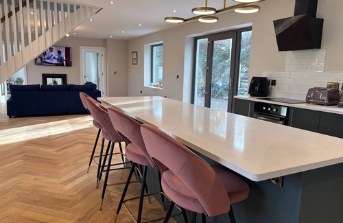 Entry from the front door, into the porch leads to the spacious open plan kitchen, dining area and living room. A spacious modern and fully equipped kitchen with all your requirements for a comfortable self-catering stay to include electric oven, electric hob, dishwasher, fridge freezer, kettle, toaster, coffee machine, slow cooker, and air fryer. The adjoining utility room houses the microwave and washing machine. The kitchen and dining area opens out to the rear of the property and a large terrace with outdoor seating area.