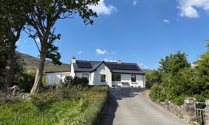 3 bedrooms, sleeps 6. Bluebell Cottage is a beautiful traditional cottage which has been renovated to a modern and luxurious standard, with guest comfort and relaxation in mind. Situated in a peaceful setting, it is just 1.5km to Roundstone village and the beaches at Gurteen and Dogs Bay. Perfect for couples, friends, and families to share. Here you can enjoy views of Errisbeg Hill, take a leisurely stroll to the beautiful Atlantic coastline, and sheltered beach at Ervallagh, explore Roundstone village, or continue to Roundstone's famous white sandy beaches at Gurteen and Dogs Bay. Roundstone village provides ample choice of places to eat and drink, and its shops will supply you with everything you need for your self-catering holiday.