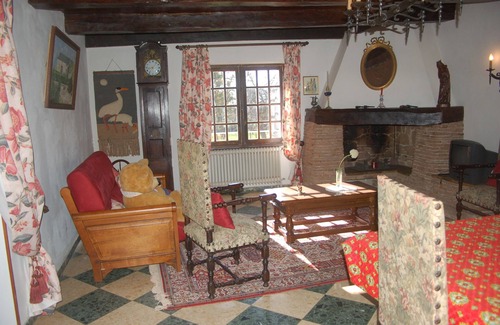 Cottage classified 3 keys until 2016. It is located upstairs in an old farm, in a quiet area. This 105 m2 accommodation crossing with a flower-filled interior courtyard on one side and the terrace on the other includes: entrance hall, separate kitchen (22 m2, 4-burner induction hob, microwave, dishwasher) utility room with washing machine, living room / living room (36 m2, fireplace, TV), office (12 m2), Wifi.