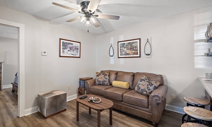 The whole group will be comfortable in this spacious and unique space. From the oversized front porch to the stylish and spacious interior, be prepared for an amazing stay.