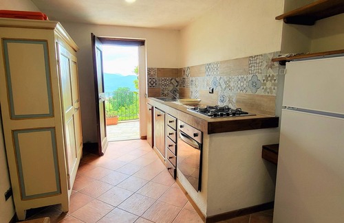 There is a renovated traditional style cottage, and a more modern house conversion, offered together providing accommodation perfect for a larger group, or for couples/small families holidaying together but also wanting their own living/kitchen facilities, yet with space to all eat together. In fact each property is independently equipped but there is also a fully equipped kitchen area under the loggia at the cottage to ensure ease of eating together, and there is a further area beside games area which has BBQ, wood oven and a sink for when you wish to cook fully outside.
