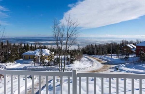Luxuous condo with huge fenestration where you can relax in front of a spectacular view over the River, admiring lights shows. At dawn, you will bask in front of the wooden fireplace where you will be enchanted by thedancing flames. Relaxation is assured! See twinned: EST-16-2