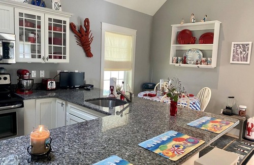 Find your beach escape in this 2 bedroom + loft, 1 bath cottage in a newer gated community. Only a short drive to sandy Wells Beach, Drakes Island, and the famous Ogunquit beach, with a trolley stop located in front of the community. This is an end unit, which includes a small private yard and is directly across from the pool! There is wood flooring throughout the unit. A fully equipped kitchen with with stainless steel stove, fridge, microwave, dishwasher, front loading washer & dryer, keurig k-cup coffee maker, toaster oven, blender and all the dishes and supplies needed. In addition to a small dining room next to the kitchen that seats 4 people, the kitchen island can sit 6 people. The master bedroom has a queen bed and the guest bedroom has full size bunk beds with a twin trundle bed. The living room has a sofa and arm chair and the enclosed sunroom has a queen sleep sofa that can be closed off for privacy. This unit is equipped with 3 flat screen smart TVs with expanded HD cable and wireless internet, Mitsubishi A/C system and heat, ceiling fans in all rooms, a new grill and an iron & ironing board. Included with this rental is access to the clubhouse with a game room, fitness room, pool and hot tub, and fire pits. The maximum number of people allowed at this property is 6 with parking for 2 vehicles. There are no pets or smoking allowed at the property.