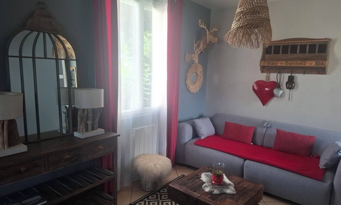 house with all comfort for 4 people .1belle room with bed 140, a small entrance, a kitchen equipped with dishwasher microwave, oven, fridge and crockery for four people. The kitchen is open to living room with sofa bed, tv. The bathroom is with shower, a toilet, a washing machine. The house is in a quiet and relaxing area where you can go for a walk in the forest the path is behind the children can play balloon beautiful walled garden