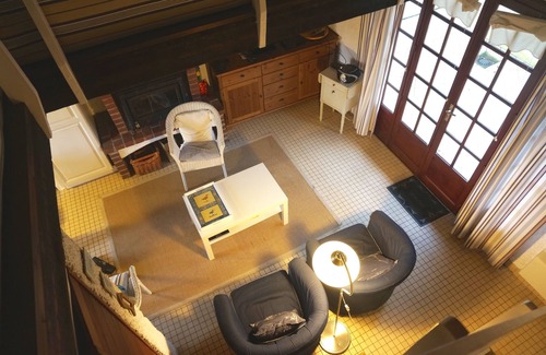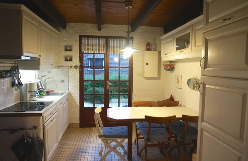 Inside, on the ground floor, there is a living room with equipped kitchen (ceramic hob, combined oven, dishwasher) and living room (with TV) as well as a bathroom with renovated bathtub. Separate WC. Upstairs, there is a large bedroom on the mezzanine with a very comfortable double bed (160) and 1 single bed (90).