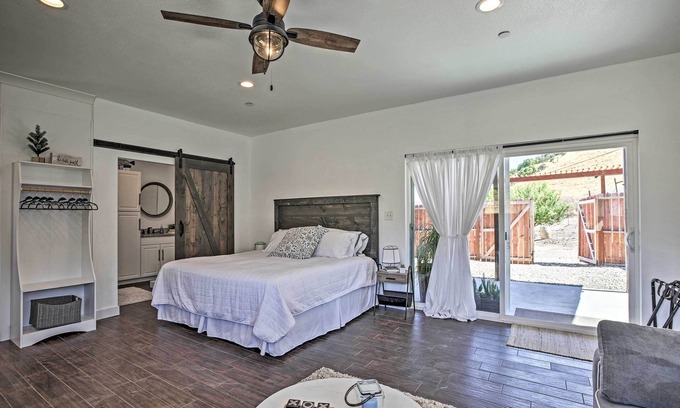 Pack your bags for an easygoing stay in Paso Robles, minutes from Lake Nacimiento and Lake San Antonio! This vacation rental cottage features a new interior with clean, modern style, 1 bathroom, a well-equipped kitchen, and comfy seating! Head outside to pick fresh fruit from the almond, pear and fig trees, kick back on the patio, or gather around the fire pit. Fill your days with visits to world-class wineries, a day trip to Paso Robles, and kayaking or paddle boarding on the lakes!