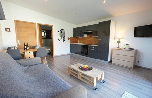 An equipped kitchen area (4 electric hotplates, fridge / freezer, dishwasher, oven and microwave, coffee or capsule coffee maker).