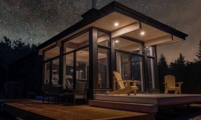 Come live a full-comfort experience in a two-room mini home, and be one with nature. Are you the active type? This mini home's perfect location means you're out enjoying the region's countless outdoor activities in no time. Or maybe you're the contemplative type? If so, you'll be admiring beautiful starry skies from the comfort of the living room's three floor-to-ceiling windows or better still, live from the outdoor hot tub.
