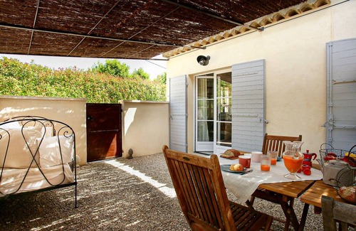 The Mirabeau cottage offers a workshop atmosphere with its generous pergola and its wrought iron French window made to measure by a local craftsman