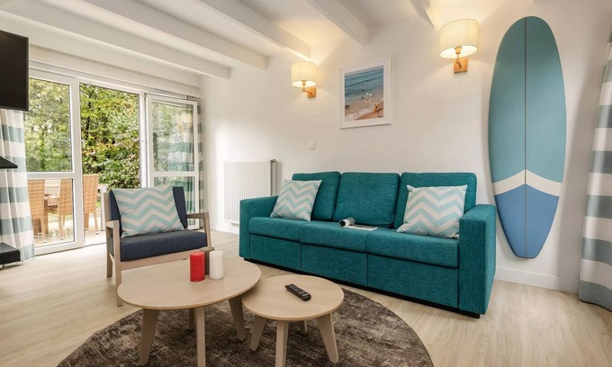 Details: Beach Access : 1000 m Wi-Fi access : supplement Playground for children Family animations : certain animations are paid Pets allowed : Pets are allowed in cottages. However, a supplement is required for specific cleaning at departure. (2 animals max per dwelling) Charging station for electric cars : 8 terminals available in the parking lot Kids club : Kids Club Bedding : included for Premium cottages, VIP Towels : included for VIP Cottage Beds made on arrival : included for Premium and VIP Cottages Final cleaning : supplement Mini golf : paid Number of stars Water park : Aqua Mundo with indoor and outdoor pool, children's paddling pool, wave pool, soft river, wild river and slides.
