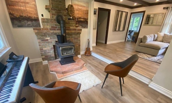 Nestled in the heart of Ancaster, this 4-acre property offers a serene escape, conveniently close to the city yet far from its noise, boasting views of the picturesque Bruce Trail. The cottage has been freshly renovated, blending modern style with comfort. Our spacious bunk beds can comfortably accommodate a group of 10, ensuring everyone has their own space. Guests can revel in the utmost privacy, making it perfect for both lively gatherings and quiet retreats.