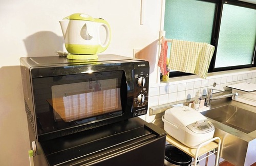 A refrigerator microwave and cooking utensils are also available so you can buy ingredients and cook freely