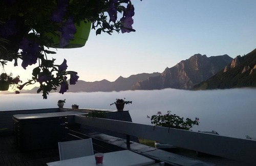 Valérie's home cooking is traditional, varied, balanced and original, using fresh produce. Meals are served in a large, bright and welcoming dining room, where the scent of simmering dishes wafts through the air. On winter evenings, you can relax by the fireplace, or on the panoramic terrace overlooking the Pyrenees when the sun comes out. Evenings end by the fireside with a cup of Valérie's herbal tea, while others prefer to play cards or board games, not forgetting the children who radiate the joy of being on vacation.