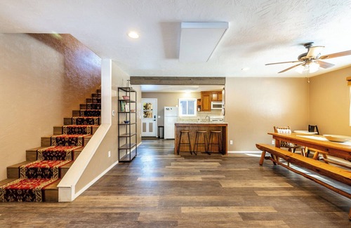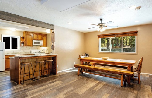 Whether you're traveling solo, as a couple, or with a group of up to six guests, this cozy retreat is designed for comfort, relaxation, and adventure. Your pets are welcome, too! From the moment you step inside, you'll feel at home. Hassle-free self-check-in, so you can come and go as you please! Inside, you'll find four bedrooms, three bathrooms, giving everyone their own space to unwind. Master Bedroom: Queen bed and bath, located on the second floor, Second Bedroom(1st Floor): Queen Bed, right off the kitchen and with a bath next to. Third Bedroom(2nd Floor): Full Bunk Bed, Great for the Kids. Fourth Bedroom(2nd Floor): The Traditional Day Bed, great for kids or extra family and friends with a very spacious room. Bonus Sleeping Options: A great sectional that transforms into a 2 person sleeping arrangement. The open living and dining area is warm and inviting, perfect for sharing meals, swapping stories, or simply relaxing after a day of exploring. Outside, soak in the peaceful mountain surroundings, gather around the fire pit, and let the fresh Wyoming air refresh your soul. This home is more than just a place to stay—it's an experience. Stay here and enjoy the best of WyHOMEing, with quick and easy access to Story’s local attractions and outdoor adventures.