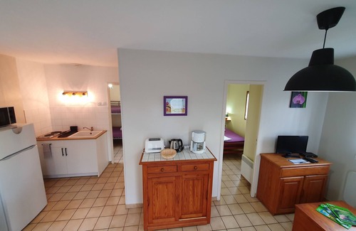 This cottage is made up of 2 bedrooms, a living-dining room and an equipped kitchen.
