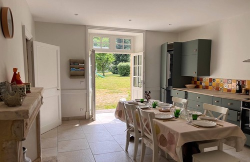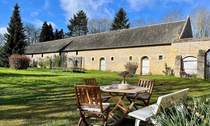 In the heart of the Bessin region, in Calvados, in the heart of the Normandy countryside, the Logis de la Motte is located at the entrance of a pretty 18th century family estate. It is an old independent cottage that has just been completely renovated by the owners, who have endeavoured to preserve the authentic character of this charming residence while providing all the modern comforts. The gîte is located in Audrieu, halfway between Bayeux (14 km) and Caen (22 km). Ideally located near the landing beaches, the beautiful medieval town of Bayeux and the city of Caen, the Logis de la Motte will allow you to spend a cultural, sporting and/or relaxing holiday, according to your wishes. The interior of the gîte is beautifully decorated. You can prepare delicious meals in the well-equipped kitchen. Spend your evenings in the garden, sipping your favourite drink. Parking is also available. On request it is possible to create an additional bedroom in the attic (3 single beds without furniture). All bedrooms have good quality Simmons beds.
