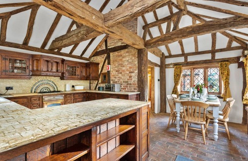 This characterful cottage offers a charming stay with three double bedrooms, comfortably accommodating up to six guests. Located in a secluded countryside setting, it provides a peaceful retreat with a host of modern amenities. The property is not pet-friendly, ensuring a serene atmosphere for all guests. The living area features a cozy open fire (available between October and April), and the spacious grounds include a hot tub (available from 18th September 2023) and a shared tennis court, perfect for relaxation and recreation. The cottage also includes parking for two cars and a secure gated entrance, ensuring convenience and privacy. Set within the picturesque countryside of Crawley Down, the cottage is ideally situated near a range of attractions. Guests can enjoy the natural beauty of the High Weald Area of Outstanding Natural Beauty, with numerous walking trails starting from the front door. The village of Crawley Down, just a short walk away, offers a selection of pubs, restaurants, and shops. Nearby, visitors can explore National Trust properties such as Standen, Sheffield Park, and Nymans Gardens, or take a trip to Ashdown Forest, famous for its association with Winnie the Pooh. The property is also within easy reach of Gatwick Airport and several railway stations, making it accessible for travelers. The cottage features a fully equipped kitchen, ideal for preparing home-cooked meals, and a family shower room located upstairs. The property includes essential amenities such as a washing machine, internet access, heating, and included linen and towels. The extensive grounds also offer outdoor spaces to explore, with ponds, pasture, and woodland. The hot tub and tennis court provide added leisure options, while the secure parking area offers ease of access.