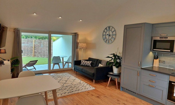 This eco-friendly cottage, located on the edge of Dartmoor National Park, offers a perfect retreat for two guests. One of its most appealing features is the private outdoor hot tub, which is ideally positioned in an enclosed garden space. The 5-seater hot tub uses efficient hot water technology, reducing energy consumption while ensuring it’s ready for a relaxing soak within an hour. It’s the perfect spot to unwind after a day of exploration in the beautiful Devon countryside. The cottage includes a comfortable open-plan living and dining area with a plush sofa and a smart TV, creating an inviting atmosphere for a cozy evening indoors. The bedroom boasts a super king-size bed with plenty of storage space, offering a peaceful sanctuary to retreat to. For added convenience, a shared laundry room with a washer/dryer is available. Guests can enjoy the scenic outdoor space, complete with the hot tub and outdoor seating, ideal for enjoying a peaceful night under the stars. In addition to the hot tub, guests have access to leisure facilities, including an all-year hard tennis court and 24 acres of tranquil countryside, complete with fishing lakes. On-site parking for two cars is provided, along with Wi-Fi, ensuring a seamless stay. This property is an excellent choice for couples looking to enjoy a peaceful and romantic getaway surrounded by nature.