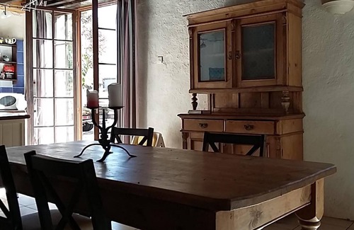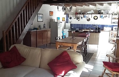 The cottage is a renovated stable block to the rear of what was once a hotel facing on to the village square and the beautiful castle and church. The open plan cottage is set in a sunny courtyard with parking and has access to a large sunny garden with a patio and covered dining area with BBQ, it has a slide and other garden toys. The pool is heated with a decking surround , a seating area and sun loungers. The pool terrace is in full sun from morning until late evening and is not overlooked. We live in the main house with our two boys (aged 21 and 17) and we occasionally use the garden and pool but mostly you will have it to yourselves. The village of Bazoges is very pretty and dominated by the 'donjon' or fortified castle in the centre and the romanesque church. There is a very highly regarded restaurant a short stroll away and the village has a mini supermarket with a small bar and terrace and pharmacy. For bigger shopping, the town of Chantonnay is 10k away and has a large variety of big hypermarkets and other shops.