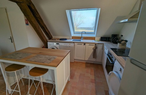 Whether for a relaxing getaway, a cultural exploration or an outdoor adventure, you will find around the Pozoir gîte something to live an authentic experience in the heart of Loiret. The Le Grand Pozoir gîte for 6 people is located on the first floor of the house. A beautiful living room with lounge, dining room and open kitchen, a bedroom with a 140x190 cm double bed, a bedroom with a 140x190 cm double bed and its private adjoining bathroom and private separate toilet, a separate bathroom, a separate toilet and on the 2nd floor (open to the staircase) a bedroom with two 90x190 cm single beds.