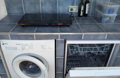 The house has air conditioning and wifi. Around the house there is a large garden with trees, pond, a pergola with climbing vine tree, a large terrace with kitchen, induction hob, washing machine.