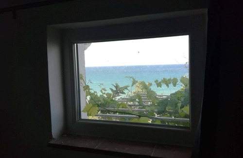 The house is on two levels: downstairs there is a double sofa bed, TVand access to the bathroom with bidet and walk-in shower; above the wooden mezzanine there is a double bed with wardrobe space, and windows with sea view.