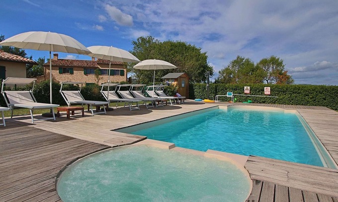 Yes, this Montelabbate cottage has a swimming pool. Check the Facility Overview section for details about the pool and other available facilities.