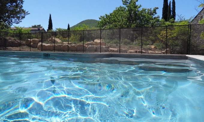 cottage in southern Ardèche with swimming pool (4 X 8) on large enclosed land (4000m) is located in Saint-Maurice-d'Ibie. cottage in southern Ardèche with swimming pool (4 X 8) on large enclosed land (4000m) provides accommodation, featuring Internet, TV, Security/Safety, among other amenities. This House features Internet, TV, Security/Safety, to make your stay a comfortable one.