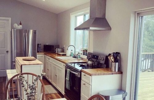 Recently renovated 1960's Popular Mechanics kit-home cottage on 63 private acres near the Berkshire's. Enjoy spectacular mountain views all year round. This 4 season cottage is only 20 minutes away from Tanglewood, Lenox, and ALL that the Berkshire has to offer. 15 mins away from Jiminy Peak ski resort and others. The Cottage sits on a private hill, just minutes away from cafes, restaurants, farmers' markets and a brewery! Only 10 minutes away guests have access to a private beach at the area's preeminent lake (Queechy lake) for swimming, kayaking and summer fun. The property has an expansive lawn with a large deck surrounded by birds, butterflies, over 20 apple trees, wild berries, and the uninterrupted night sky for stargazing. Perfect for city dwellers looking for a getaway or a small family looking for new adventures. Come enjoy the simplicity of nature.