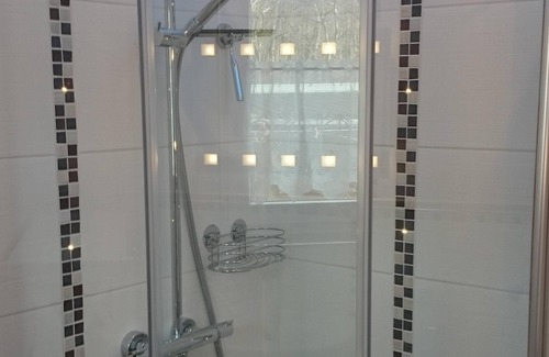 - bathroom with toilet and shower