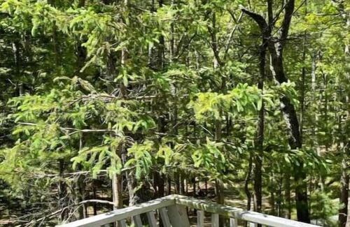 Nestled atop a forested dune surrounded by a dense pine and oak forest, this "treehouse" cottage was renovated with the most sustainable and local practices available: Beautiful stranded bamboo floors throughout, 12" wide pine board walls and ceilings, an amazing R25 shell rating and VOC-free paint, to name a few. The structure provides a cool temperature with just the use of ceiling fans on most nights.