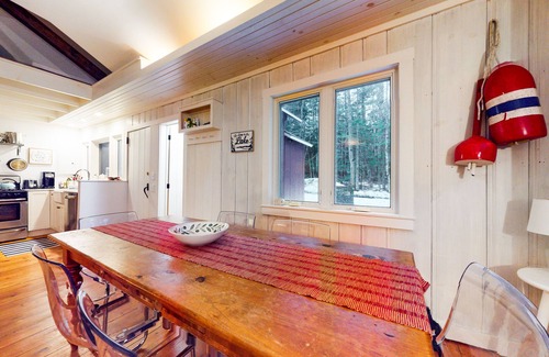 After a day filled full of adventure, head back to your cozy quarters where you'll find plush furnishings (kept warm by the heat of a gas fireplace), a well-equipped kitchen, and a sun-drenched seating room. Relax, play, sleep, and eat in this little red cottage. Skiing gear can be cleaned in the private washer/dryer. And barbecued meals can be prepared on the gas grill.