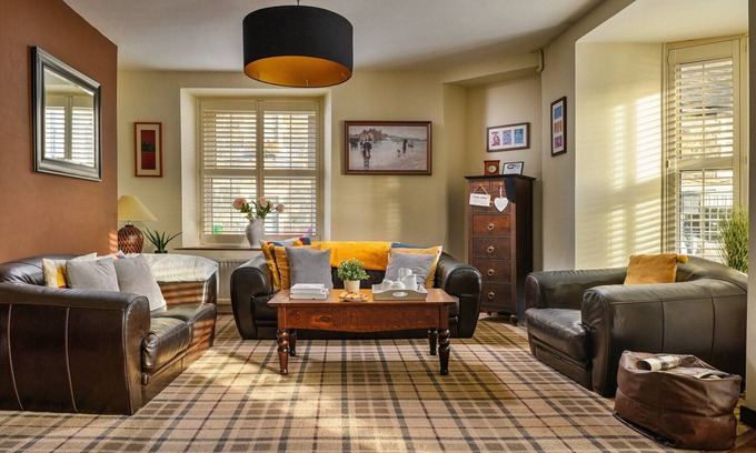 This spacious cottage in Tremadog offers a charming escape for up to 10 guests across five well-appointed bedrooms, making it ideal for families or groups. Set in a Grade II listed building, the home combines classic character with modern comforts, including a private courtyard hot tub and log burners in both the lounge and kitchen. Sleeping arrangements include a queen-sized master bedroom, three double rooms, and a bunk room—perfect for children. A small, non-shedding dog is welcome, making it a pet-friendly choice. Guests can enjoy cozy evenings by the fire or gather for meals in the 10-seater dining area. Perfectly located in Tremadog Square, the property is just a short stroll from local shops, cafes, and restaurants. It serves as an excellent base to explore nearby Porthmadog, the Snowdonia National Park, and several stunning beaches just a 15-minute drive away. The picturesque villages of Portmeirion and Harlech, with its famous castle, are also nearby. Guests can enjoy both scenic outdoor adventures and convenient local amenities, all within easy reach. Additional features include a fully equipped kitchen with a Belfast sink, a utility room with extra appliances, free on-street parking, and Wi-Fi throughout the property. Outdoors, the private courtyard offers dining space, a BBQ area, and the hot tub for relaxing evenings. The top-floor double rooms have sloped ceilings and may not suit taller guests, but the cottage overall provides a warm and inviting home-away-from-home for group getaways.