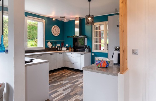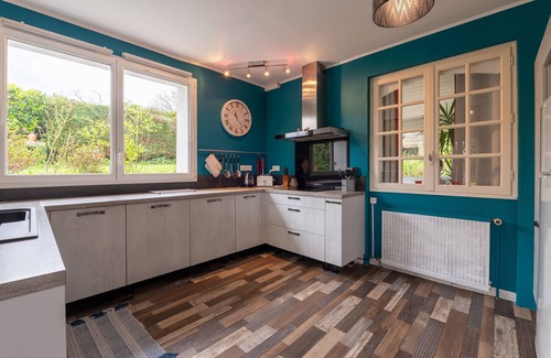 The cottage Jardins De La Cantine- Terre Et Mer is located in Plumelin and is perfect for an unforgettable holiday with your loved ones. The 84 m² property consists of a living room with a sofa bed for 2 people, a fully-equipped kitchen, 2 bedrooms and 1 bathroom as well as an additional toilet and can therefore accommodate 6 people. Additional amenities include Wi-Fi with a dedicated workspace for home office, a TV as well as a washing machine. A baby cot is also available.