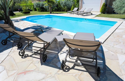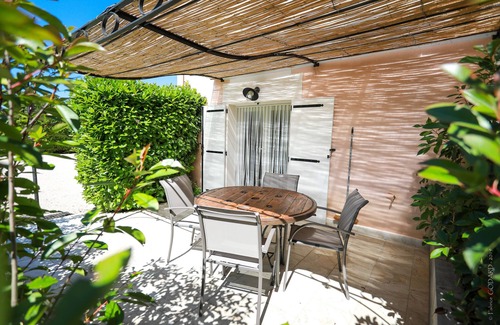 You will find a beautiful private terrace in front of the apartment (15m2), under a Provencal pergola, with tables & chairs as well as a serving table in Plancha for your grills.
