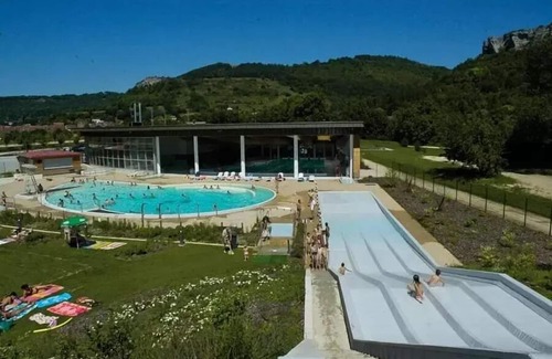 Details: Playground for children Pets allowed : Only domestic animals kept on leash are accepted for a supplement of €3.30/day/animal (1 max per accommodation excluding category 1 and 2). You must then present their vaccination books to the reception office. Only one animal is allowed per dwelling. They must not be left in solitary confinement in the absence of their masters who are civilly responsible. Dogs of 1st and 2nd category are prohibited. Barbecue : collective Charging station for electric cars Deposit (in supplement) : 500 Balneo area : sauna, jacuzzi, hammam - rate and on-site payment Baby Kit : 5€/ day/ kit (subject to availability) - to be paid on site Laundromat : rates and on-site settlement Towels Final cleaning : 100€/ accommodation - to be paid on site Number of stars : 4 bowling Ping Pong : yes Swimming pool : external from end June to end August with pentagliss Indoor swimming pool : heated indoor pools all season Near airport : Lyon Saint-Exupéry Airport #LYS (193.8 km), EuroAirport Basel-Mulhouse-Fribourg Airport #BSL (161.5 km), Geneva International Airport Cointrin #GVA (95.5 km) Restaurant : crêperie Tourism and Handicap European Ecolabel Bird Protection League Label destination excellence Pets Allowed : Only pets kept on a leash are accepted for a supplement of €3.30/day/animal (1 max per accommodation outside category 1 and 2). You must then present their vaccination records to the reception office. Only one animal is allowed per accommodation. They must not be left locked up alone in the absence of their owners who are civilly responsible. Dogs of 1st and 2nd categories are forbidden. kettle Coffee maker Bedding Number of bedrooms : 2 Number of double bed : 1 Number of single beds : 2 Number of pieces : 3 Number of toilets : 1 Number of bathroom : 1 Cooking plate Fridge Napkins Surface (m²) : 32 Terrace Garden Lounge Car park