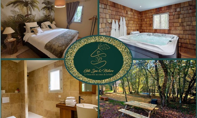 This house is a reflection of our gîte and of Périgord, it is at the same time timeless, soft, soothing and relaxed. Get closer to nature and rediscover the taste for simple and real things thanks to its natural decoration. Once comfortably seated, you can enjoy the pleasures of the spa in a dedicated room with its luminous starry sky. Perhaps you will find certain constellations like the “guardians of the North Star”… Finally, a furnished and covered terrace with barbecue will ensure you make the most of a green and soothing setting. Private parking right next door.