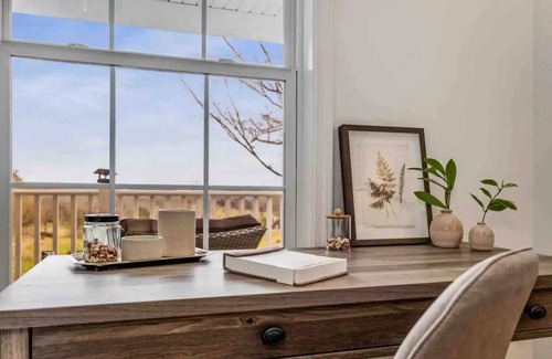 We provide high-speed wifi and a dedicated workspace in the primary bedroom. You can take calls from the comfort of the deck, all while enjoying views of the rolling hills.