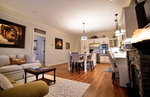 Bright and beautiful stone cottage in wonderful neighborhood. With an incredible bathroom and amazing kitchen. This cottage can be your home away from home. It is located just under three miles from downtown Greenville. It is well equipped to comfortably accommodate a family of 4. It is also located within walking distance to Bob Jones University. There is parking for two cars right in front of the cottage on the checkerboard parking area.
