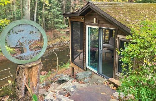 On the property, for your use, is a creekside, fully screened in, (not kid friendly) meditation room that is suspended right above the flowing water. The perfect spot to relax, have a meal or morning coffee. Mountain water flows through the creek making it pristine for fishing, rock stacking or floating. The Appalachian trail and Fly Fishing areas are around 1 mile from the property.