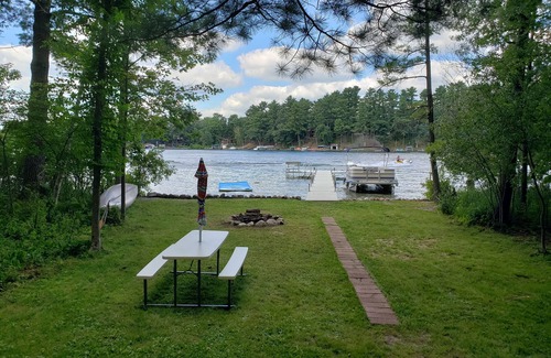 The lake shore has a sandy shoreline for children to play in the sand and a sand bottom 60 ft out to the drop off for everyone to play in the water. We have a long t-style dock for fishing, sun tanning and relaxing. It is sunny on the dock all day with beautiful sunsets across the lake. The water is crystal clear. There are great places to eat or enjoy a band by boat or car along with ice cream shops and a miniature golf course. Take the canoe or rent our kayaks and enjoy a peaceful day in the Upper Chain. Hartmans Creek State Park is just down the road with miles of biking and hiking thru the woods. You will love it here. Please come and enjoy yourself.