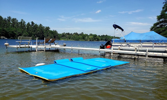 A week pontoon rental is required when renting. It will be paid for seperately by sending us a check the same week I accept your booking for the cottage on VRBO. We do it separately so you dont have to pay vrbo fees on the pontoon, water package or kayaks. It is an 18' pontoon with the normal cushion seats (not plastic chairs). The seats are discolored now but still much better than plastic chairs. It has a newer 60 horsepower Mercury motor. The price is $600 per week plus a $200 security deposit. (That is much less than renting from any of the marinas on the lakes). Short stays are $400 for 3 days plus a $200 security deposit and $100 per day more after that up to $600. Tubing or waterskiing behind the pontoon is not allowed and it must be returned to our dock each day and not left parked anywhere else overnight. It also must be parked on the side of the dock at all times and not on the end of the dock because of the waves.