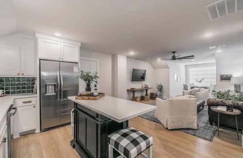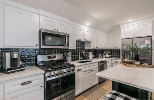 Guest suite upstairs is beautifully decorated with Restoration Hardware and Pottery Barn furniture. You will feel so pampered with Crate and Barrel kitchenware and 55" Smart TVs in the living room and each of the bedroom. The entrance to the suite is private. Your privacy is honored. You won't see my beautiful face unless you request to do so!!
